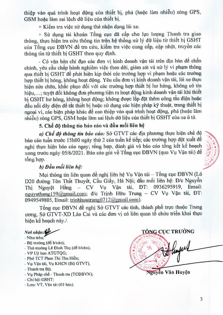 1. Thông báo tổng kiểm tra toàn quốc thiết bị giám sát hành trình